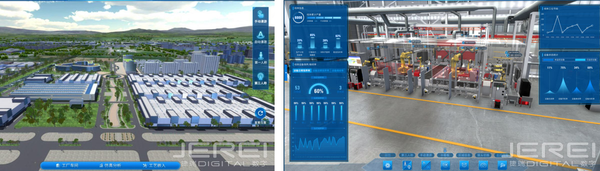 用戶可通過鍵鼠、移動平板對整個園區(qū)進(jìn)行旋轉(zhuǎn)、縮放、移動等操作,也可在場景中通過路線設(shè)置、參數(shù)配置(速度、高度、俯仰角、語音、文字等)自定義漫游線路,漫游路線可自動導(dǎo)覽,第一、三人稱視角自由切換。漫游可在PC、VR、移動端呈現(xiàn)。幫助用戶更好的把控現(xiàn)場生產(chǎn)。