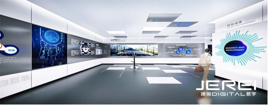 在數(shù)字智慧展廳的建設(shè)過程中,捷瑞數(shù)字充分利用了最新的數(shù)字技術(shù)和多媒體手段。例如,運(yùn)用虛擬現(xiàn)實(shí)技術(shù)打造沉浸式體驗(yàn)場景;利用大數(shù)據(jù)分析技術(shù)實(shí)現(xiàn)智能導(dǎo)覽和個(gè)性化推薦;通過互動(dòng)投影、觸摸屏等多媒體設(shè)備增強(qiáng)參觀者的參與感和體驗(yàn)感。這些技術(shù)的應(yīng)用不僅提升了展廳的展示效果,也為參觀者帶來了前所未有的互動(dòng)體驗(yàn)。