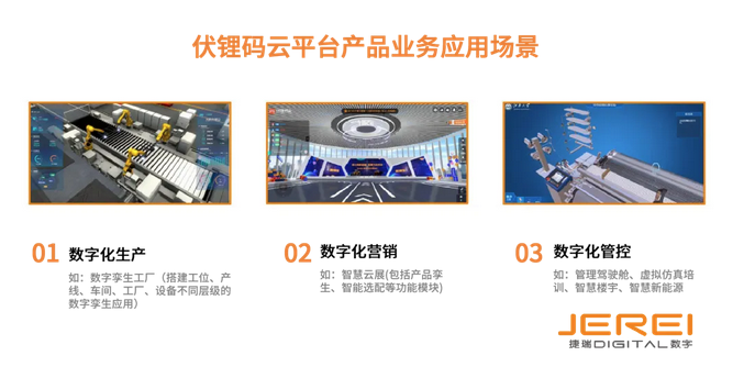 平臺包含J3D數(shù)字孿生開發(fā)平臺、RBI商業(yè)智能開發(fā)平臺、模型智能輕量化平臺和應(yīng)用低代碼開發(fā)平臺,支持Web數(shù)字孿生、數(shù)字決策應(yīng)用在線開發(fā)。同時,平臺搭建了一個開放的工業(yè)互聯(lián)網(wǎng)技術(shù)服務(wù)體系,涵蓋物聯(lián)網(wǎng)、數(shù)據(jù)平臺、數(shù)字孿生應(yīng)用開發(fā)、算法服務(wù)等一系列產(chǎn)品和技術(shù)解決方案,打造資源富集、信息共享、合作共贏的工業(yè)互聯(lián)網(wǎng)產(chǎn)業(yè)生態(tài),從數(shù)字化營銷、數(shù)字化生產(chǎn)、數(shù)字化管控三個維度,助力企業(yè)全價值鏈數(shù)字化轉(zhuǎn)型升級。